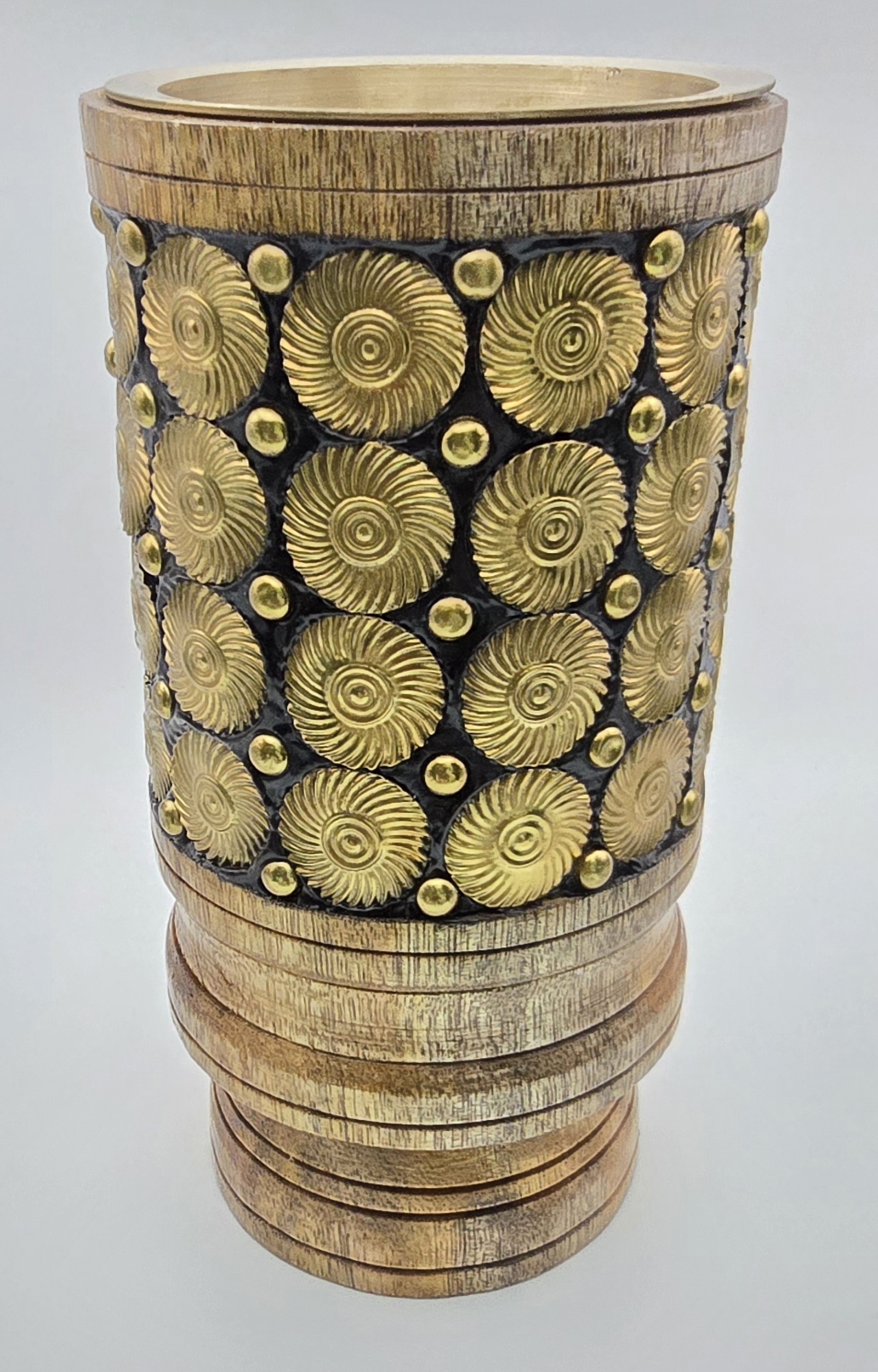 Wooden Incense Burner Decorated with Brass